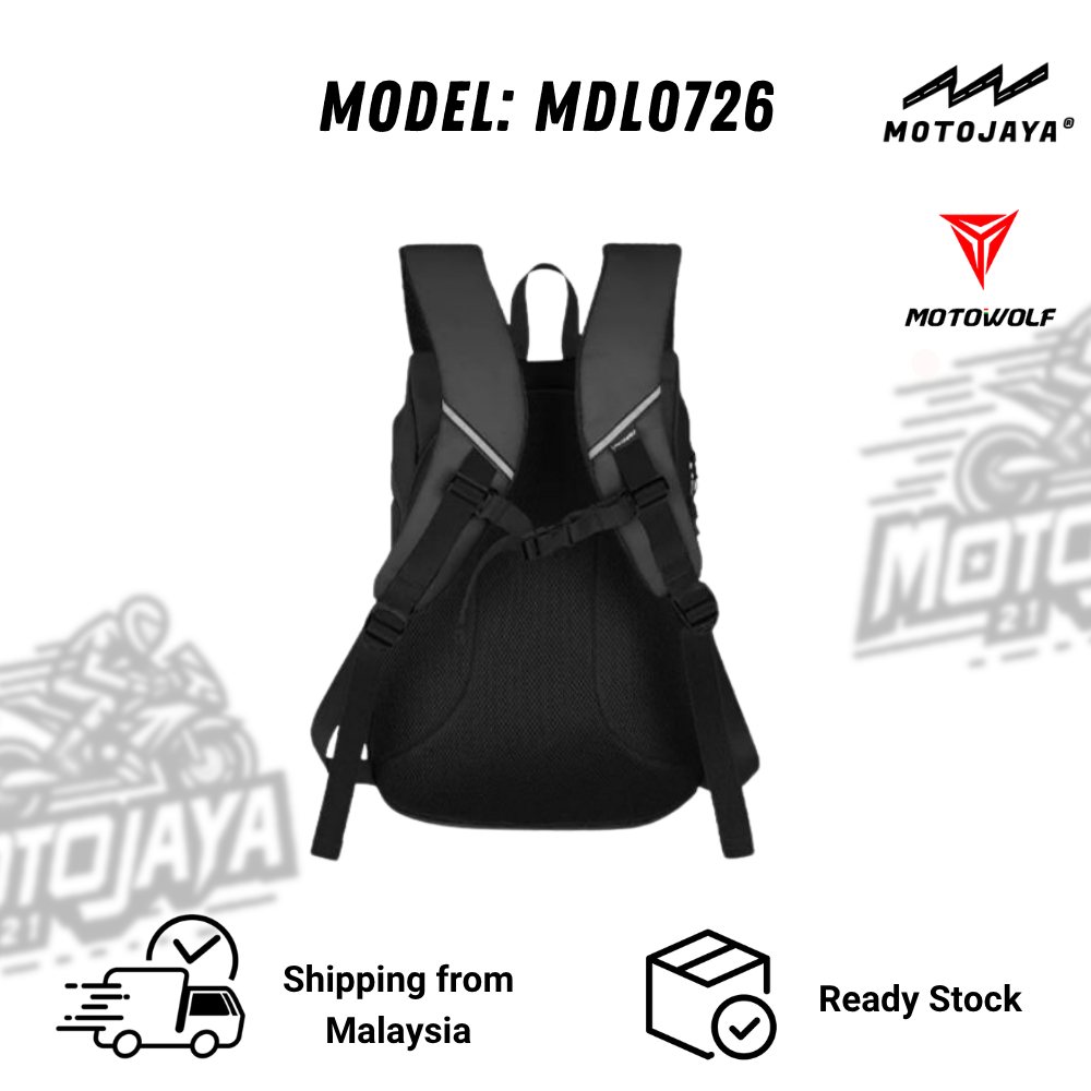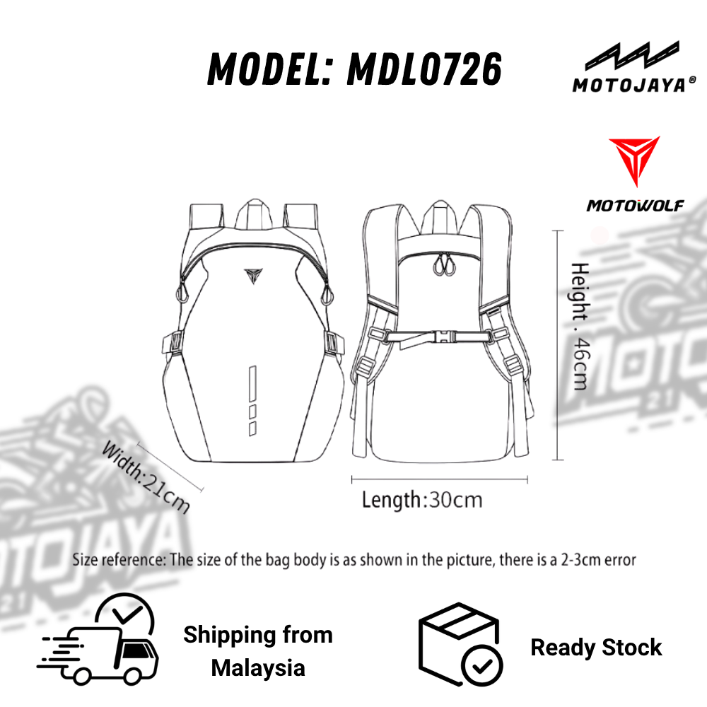 - Waterproof 900D material - Large capacity (β 29 L for helmet + gear) - Double zipper provides easy access - Air-vent 3D back panel - Chest buckle for stability - Reflective stripes for night visibility - Inner pocket organizer - Multipurpose: backpack or handbag usage - Dustproof & anti-tear construction - Size approx P 21 cm Γ L 30 cm Γ H 46 cm